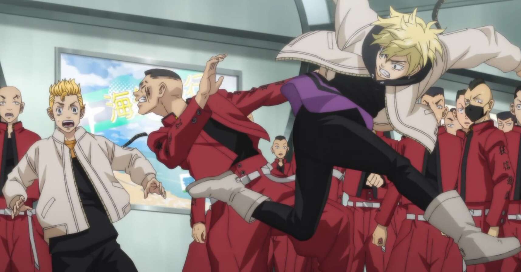 東卍のトップになると武道が決意してから一週間、これといった策がなく自宅で漫画を読んでいる武道ですが、呼んでいた漫画(バイブル)の影響で武道は横浜に急に向かおうとします。武道は不良界のテッペンを獲るには、横浜(ハマ)のヤンキーをしめればいい、と出だします。しかし、横浜に向かおうと渋谷駅で電車に乗り込もうとした時、武道は千堂達が赤い詰襟の不良集団にボコられている場面に遭遇します。さらに武道まで東卍というだけでボコられそうになりますが、千冬に助けられ武道は千堂を連れて逃げることにします。