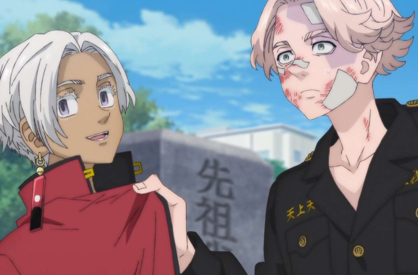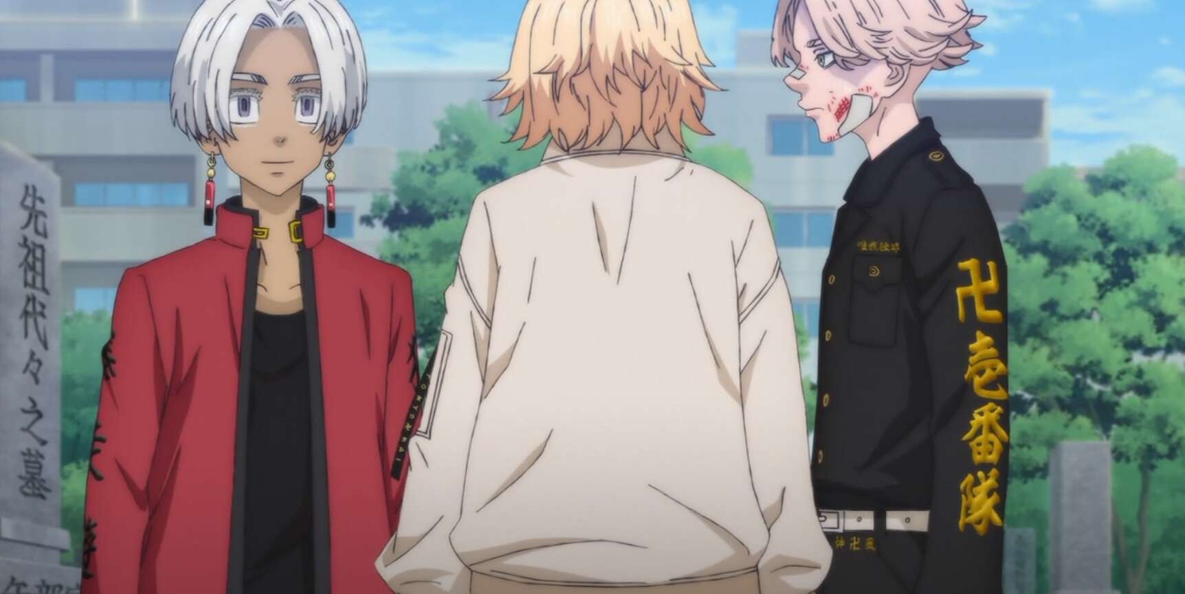 天竺との決戦の日となる2月22日の朝、武道とイヌピーは真一郎の墓前で、武道が十一代目 黒龍総長になった事を報告します。しかし、真一郎の墓前でイザナと遭遇してしまい、一瞬即発の状態になりますが、その時マイキーとエマも墓参りに訪れてイヌピーに殴りかかろうとするのを止めるように言います。