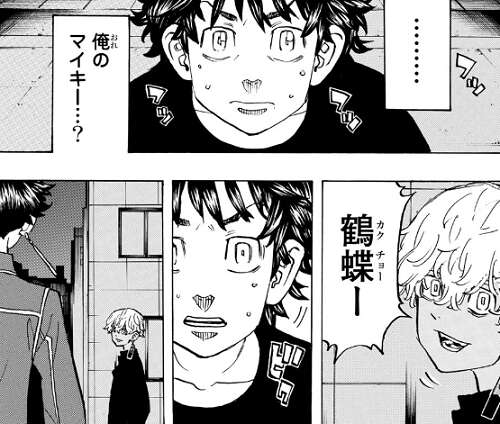 天竺のアジトに乗り込んだ武道達ですが、そこには“天竺”四天王の鶴蝶他、100人が待ち構えていました。罠と思われましたが、鶴蝶は他の100人に出ていくように命令し、武道、河田兄弟、千冬に4対1の勝負を持ちかけます。