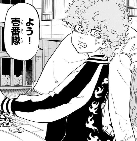 東卍をクビになった稀咲ですが、今度は横浜“天竺”総参謀として現れ武道に、“オレの東卍”を創る、と宣言して去っていきます。稀咲が去った後、残った武道達を天竺、望月隊が大人数でボコろうとしますが、そこに肆番隊の隊長&副隊長コンビが助けに現れます。