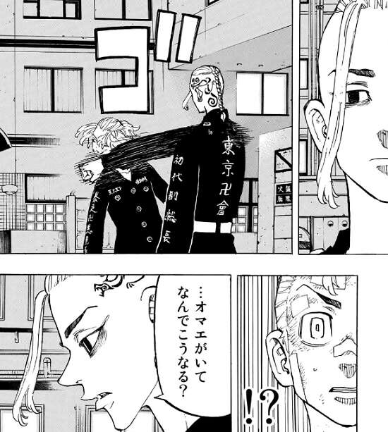 病院に駆けつけたドラケンはエマの遺体を見て、マイキーに何が起きたかを問いただします。何も言わないマイキーにドラケンは、何故マイキーがいてなんでこうなる?と、マイキーに激しく怒りをぶつけます。武道が一番近くにいて守れなかったのは自分だとマイキーをかばいますが、それでもドラケンはマイキーを許せず殴り続けます。