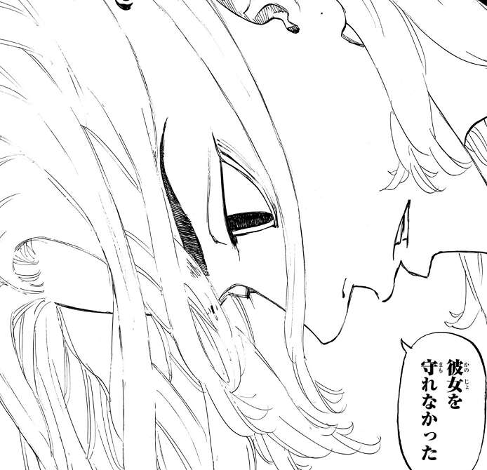 「東京卍會」と「天竺」との抗争、関東事変の後、死亡した佐野エマの葬式が執り行われ、ドラケンは、彼女を守れなかった、と葬式の場でマイキーの祖父に謝ります。しかし祖父から、アイツもきっと浮かばれる、と言われドラケンは涙します。佐野エマと黒川イザナの殺害事件は、主犯が稀咲、共犯が半間の2名の犯行として処理され、半間は関東事変後も逃亡を続けていました。