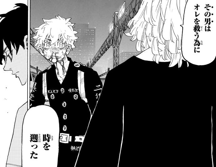 場面は真一郎が初代黒龍(ブラックドラゴン)を結成、解散した頃に戻ります。真一郎は亡くなった父親の墓に向かって、マイキーを立派に育ててみせる、と誓います。しかし、マイキーは真一郎に買ってもらったコンコルドのプラモデルで遊んでいる時に、階段から落ちて頭を打ち、意識不明の重体となってしまいます。