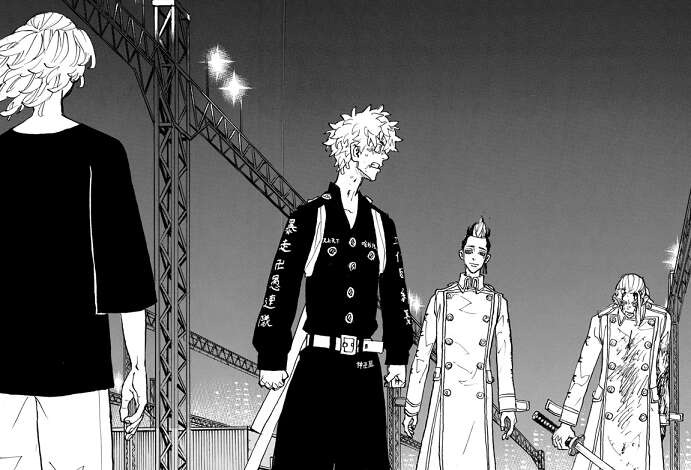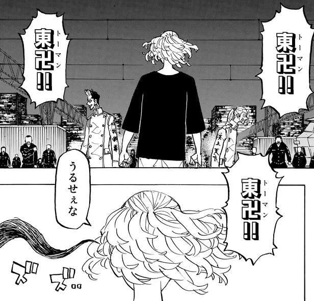 千冬に勇気づけられ、倒れていた二代目 東京卍會のメンバーが再び立ち上がり、関東卍會に立ち向かおうとします。しかし黒い衝動に染まったマイキーが、武道や他の二代目 東京卍會のメンバーを次々となぎ倒していき、さらには味方である三途や半間まで瞬殺してしまいます。