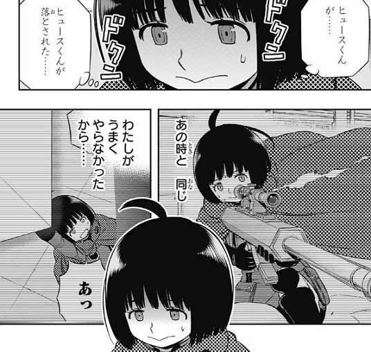 ヒュースが落とされた事を知った雨取は、ROUND4の時もうまく狙撃を当てられなかった事を思い出し、自分が上手くやれなかったからだと責任を感じます。