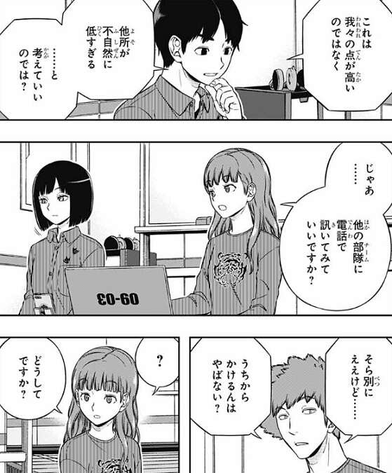 照屋は水上が何か怪しいと気付き、他のチームに電話で訊こうとしますが、水上に止められてしまい、逆に色々からかわれてしまいます。今は水上がこそこそ何かやっている事に気付いていたようですが、荒船は水上の好きなようにやらせるようです。水上もバレたときは、自分が一人うそつきとなる覚悟のようで、このままのやり方で進めるようですが、果たして吉と出るでしょうか?凶と出るでしょうか?