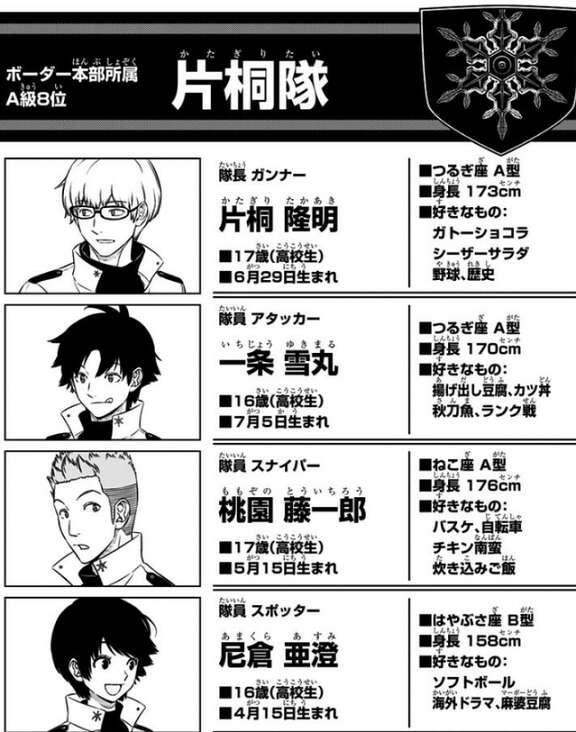 A級8位の強豪にして、現在のところボーダー唯一の「スポッター(観測手)」尼倉隊員を擁する片桐隊。