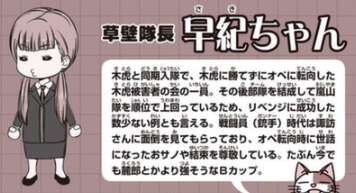と思ったら、巻末コメントに草壁隊長の事が書いてありました。木虎と同期入隊で、木虎に勝てずにオペに転向した木虎被害者の会の一員だそうです。戦闘員時代はガンナーで諏訪に面倒を見てもらっていたそうです。オペ転向時に諏訪隊・オペレーターの小佐野 瑠衣や、片桐隊・オペレーターの結束 夏凛にお世話になっていて、尊敬しているそうです。