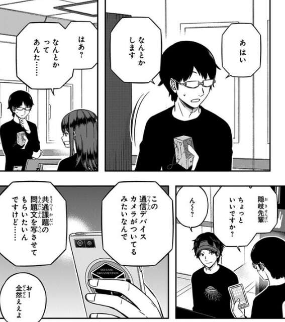 特別課題①の議論をしていると、三雲のノートパソコンが点かなくなります。原因はトリオン切れのようで、『手形』に触れて2度チャージしたせいでトリオンを全部使ってしまったようです。ノートパソコンを使えなくなってしまった三雲は、共通課題をこれ以上進めることが出来なくなり、他のチームと差がついちゃうじゃない!と、香取から責められてしまいます。
